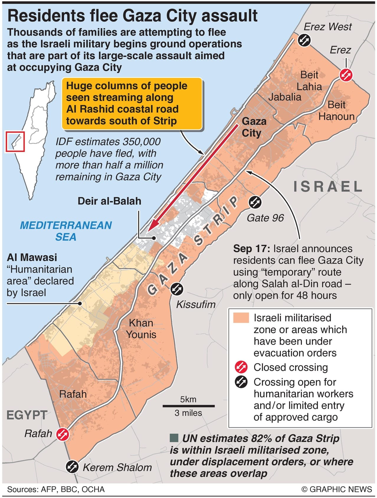 Thousands of families are attempting to flee Gaza City as the Israeli military begins ground operations that are part of its large-scale assault aimed at occupying the city.
