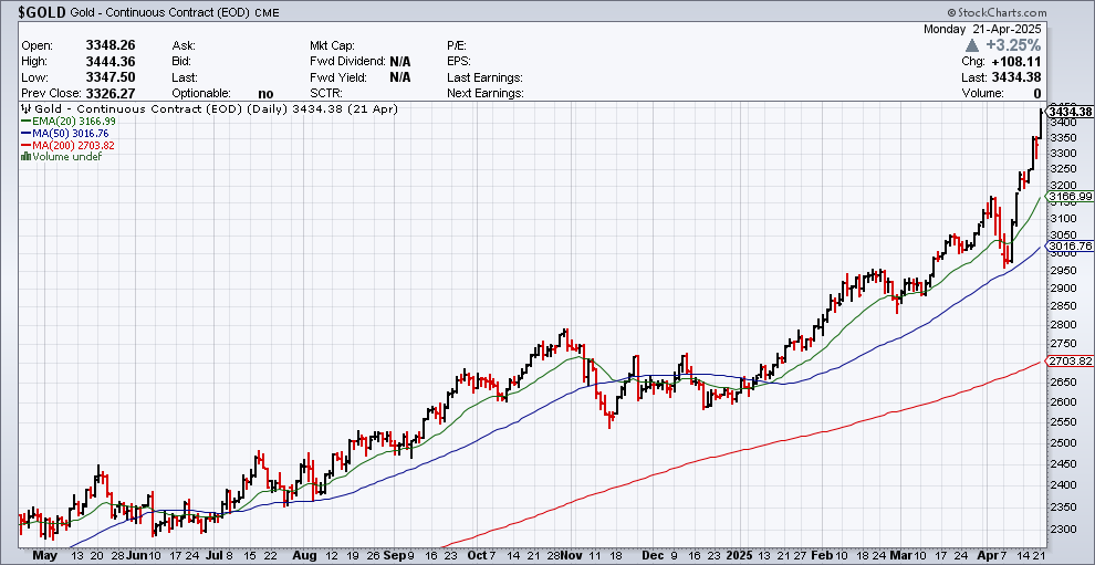 The record-setting bull run in the gold market has seen price action now go “parabolic.” In trading terms, that means prices are moving nearly straight up.