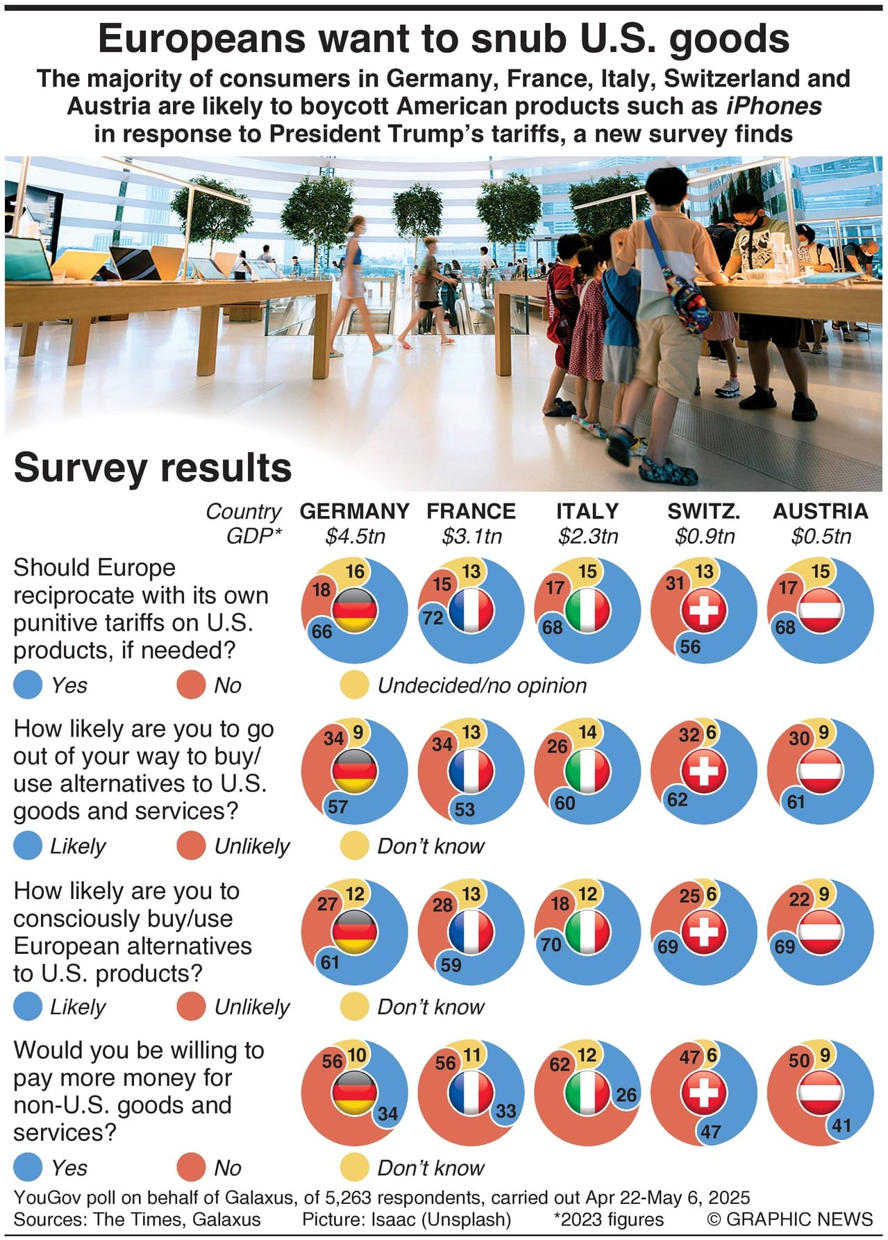 A new survey of more than 5,200 people for Swiss online retailer Galaxus, adds further substance to stories of growing dissent among European consumers for goods made in the United States, with more than half of responders saying they were likely to go out of their way to find alternatives.