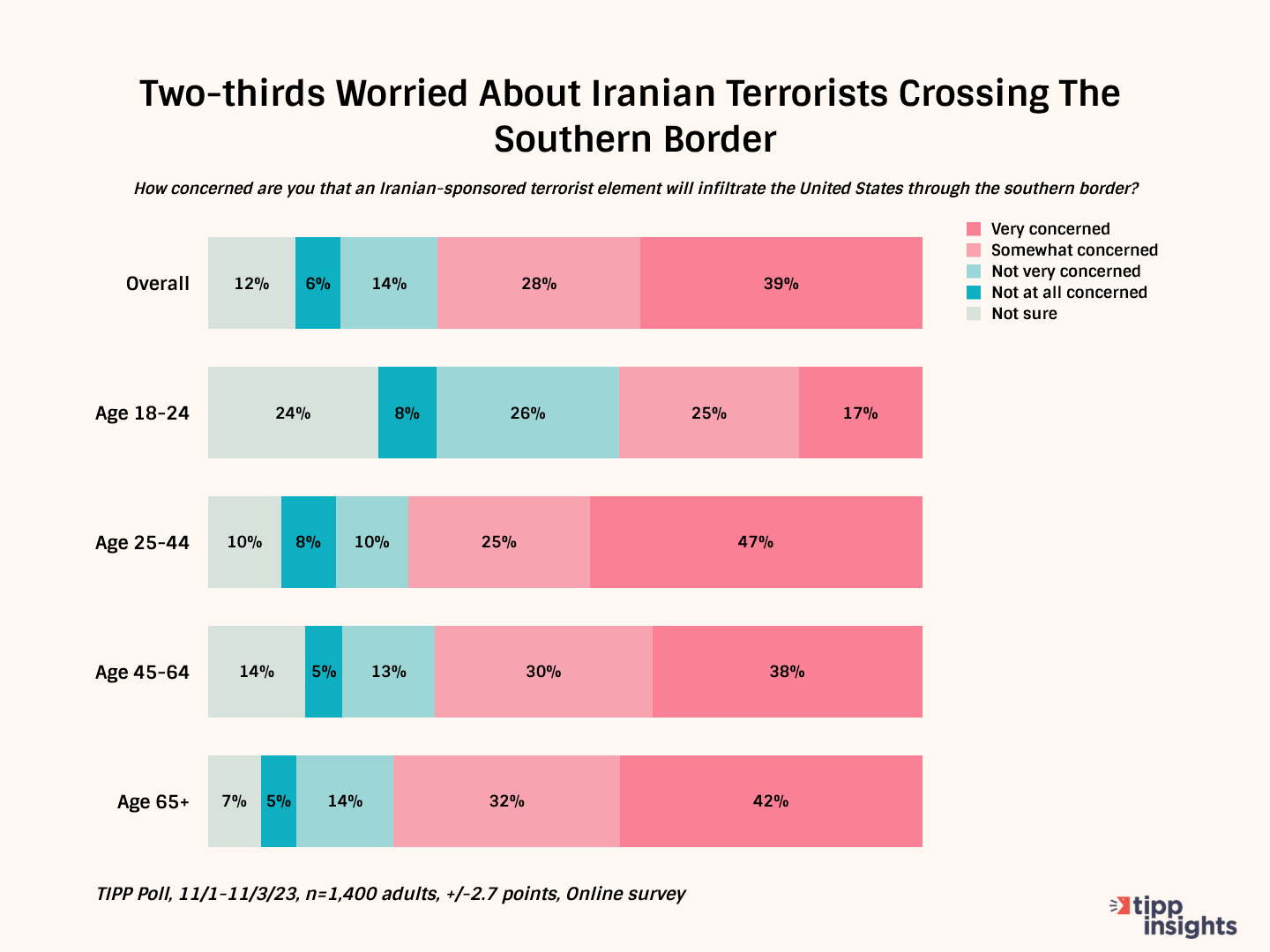 Finally, some of the clearest consensus in the poll can be found in the answer to “How concerned are you an Iranian-sponsored terrorist element will penetrate the U.S. through the southern border?”