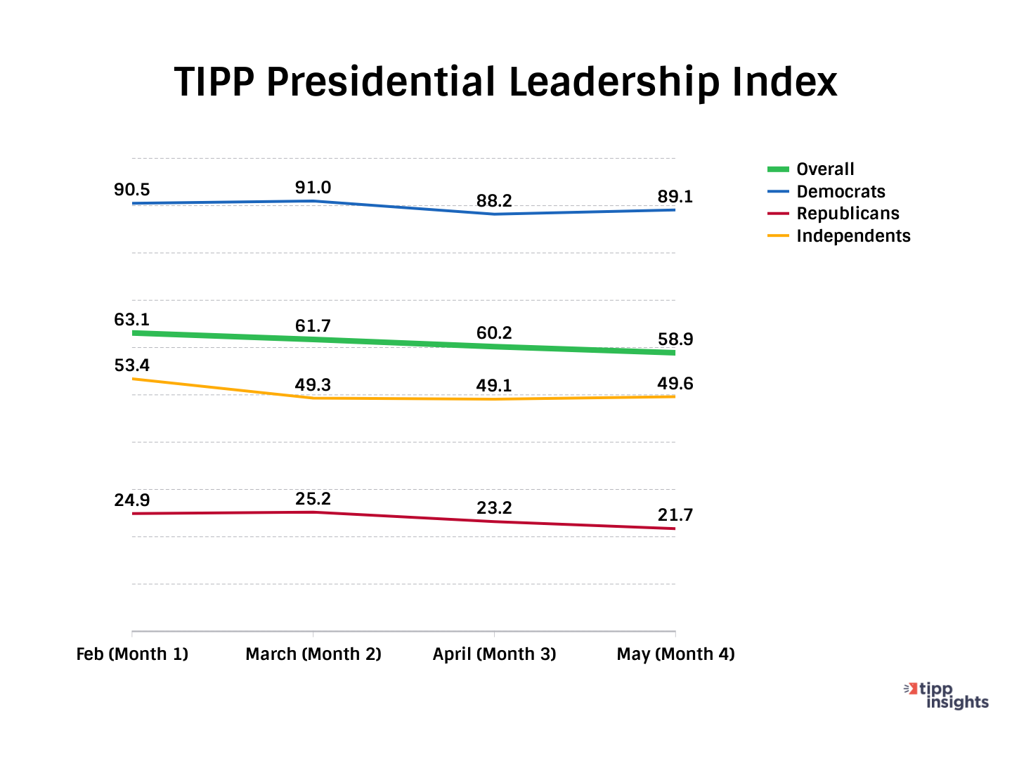 President Biden's approval rating remains strong despite a slight decline from April. It is the third consecutive month of decline.