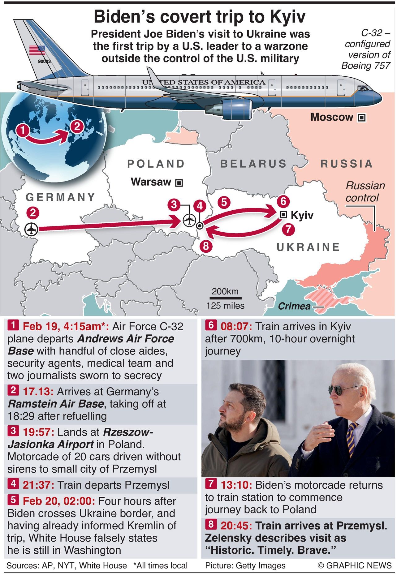 Meticulously planned over several months by a tight circle of key advisers, Biden’s visit was described as “unprecedented in modern times” by his national security adviser, Jake Sullivan because it was the first time a U.S. president had visited “the capital of the country at war where the United States military does not control the critical infrastructure.”