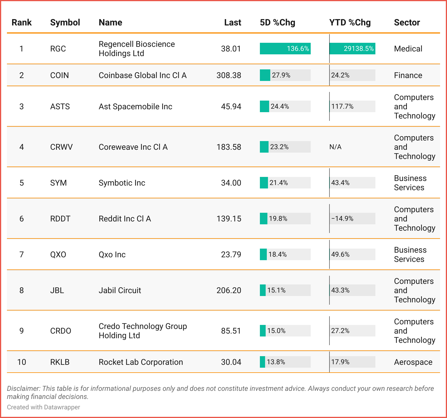 Tickers: RGC| COIN | ASTS | CRWV | SYM | RDDT| QXO | JBL | CRDO | RKLB