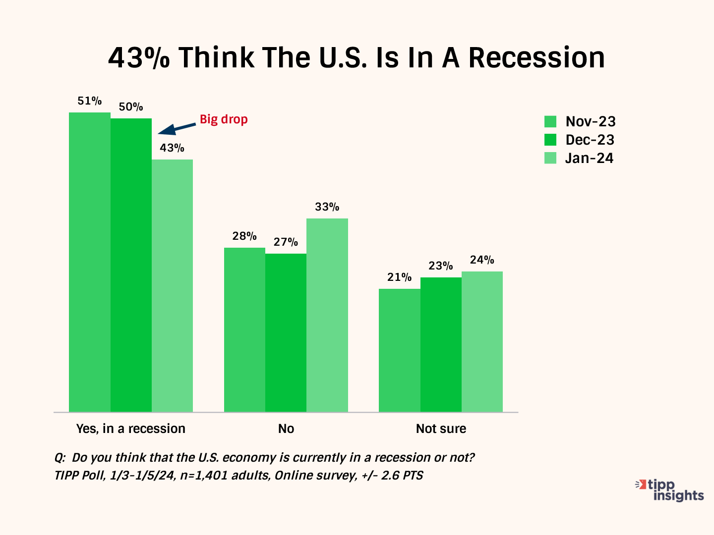 Using an online survey, TIPP polled 1,401 adults nationwide from January 3 to January 5.