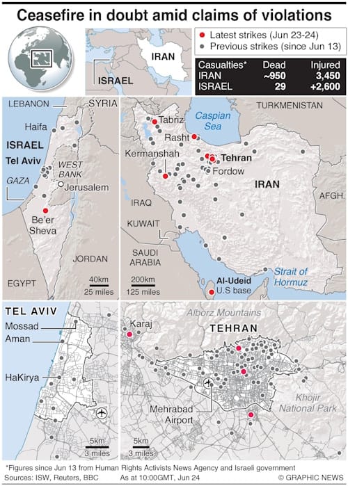 Despite the ceasefire announced by U.S. President Donald Trump, doubts remain over whether it will hold as Israel accuses Iran of a missile launch, violating the deal.