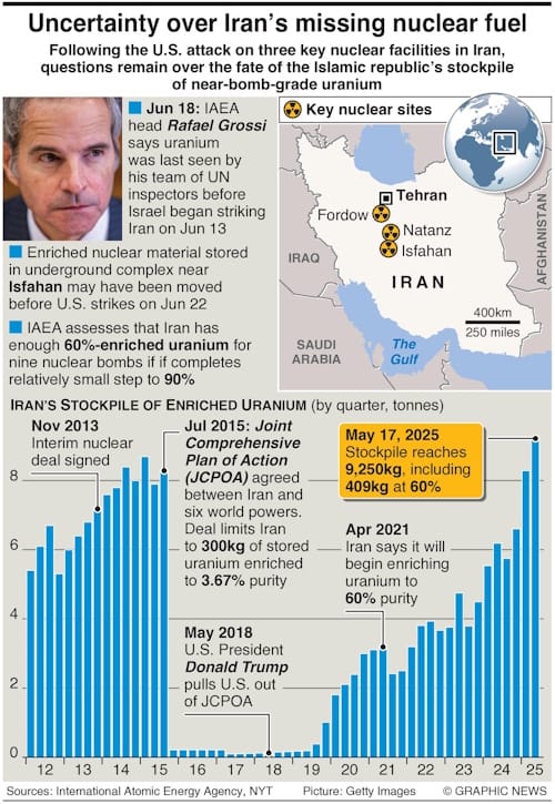 After the U.S. struck three key uranium enrichment facilities in Iran, questions remain over the fate of the Islamic Republic’s stockpile of near-bomb-grade uranium.