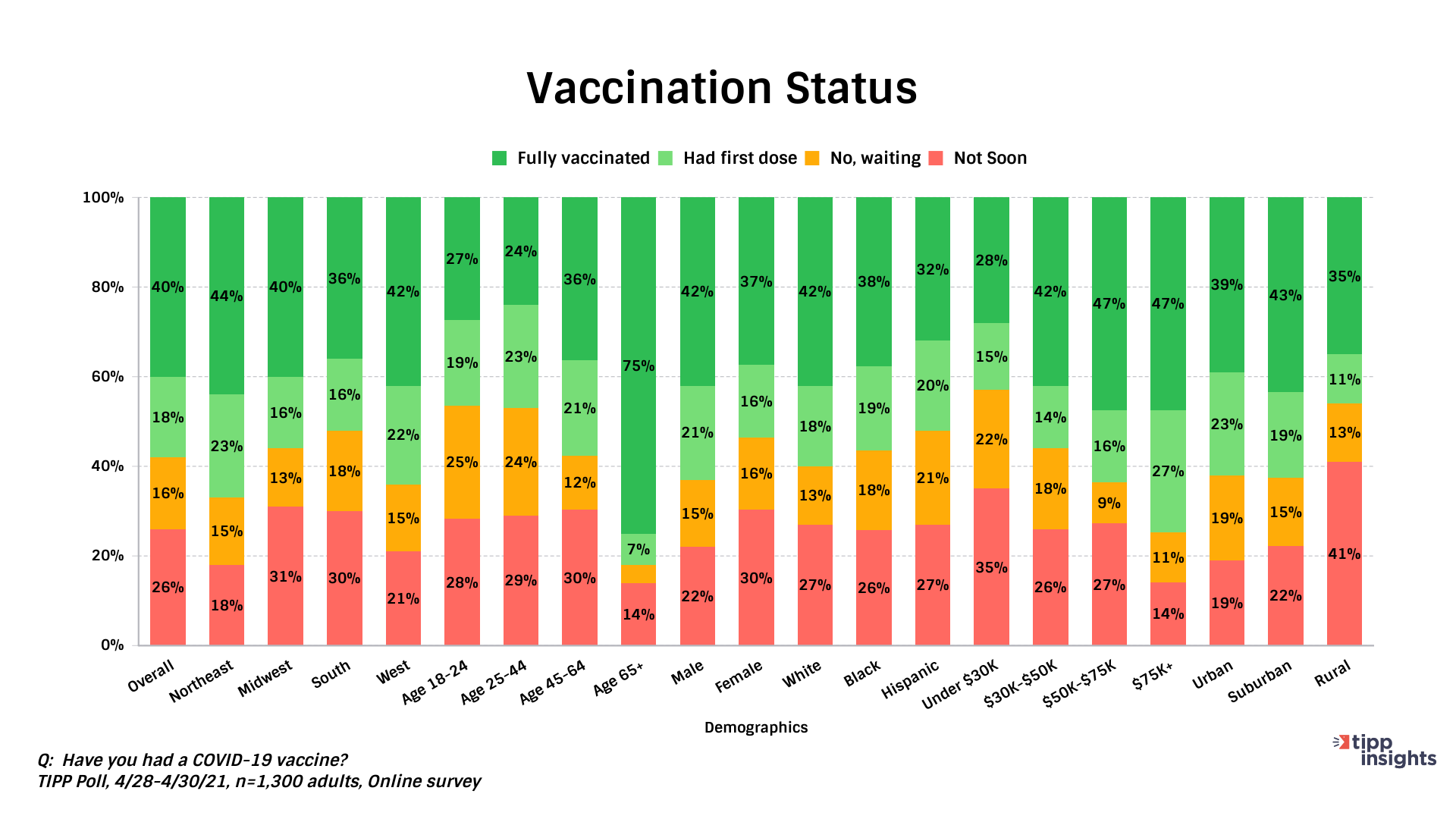 The latest TIPP Poll shows that Republicans and Independents are hesitant to vaccinate.