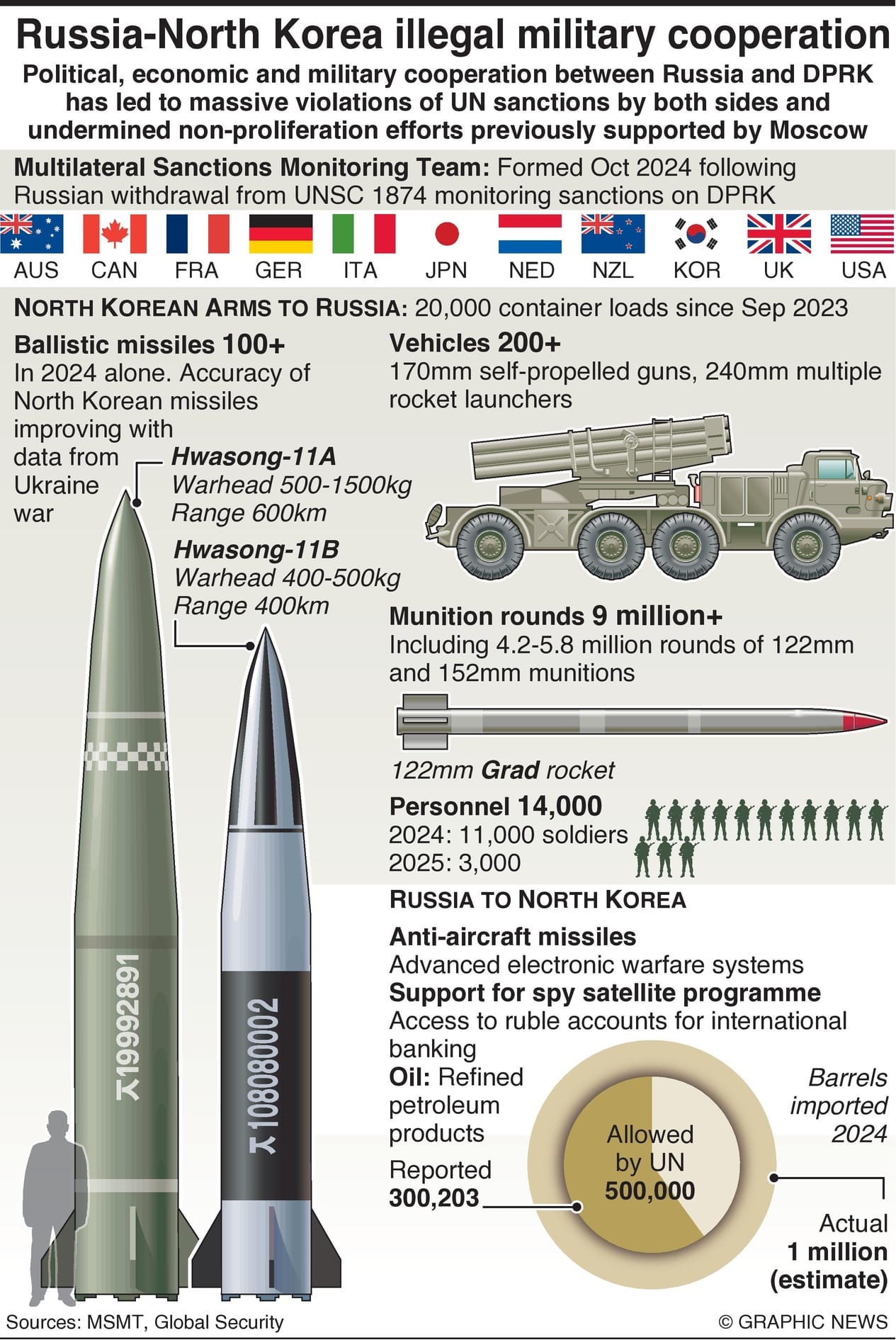 The withdrawal by Russia from UN Security Council Resolution 1718 Panel of Experts in early 2024 – set up to monitor sanctions on North Korea following six nuclear tests – left the international community without a means to report on DPRK sanctions violations. The Multilateral Sanctions Monitoring Team was formed by Australia, Canada, France, Germany, Italy, Japan, Netherlands, New Zealand, South Korea, UK and United States to continue that work, but the signing of the DPRK-Russia Treaty on Comprehensive Strategic Partnership and growing military cooperation between the two has resulted in multiple ongoing violations to sanctions on both Russia and DPRK.