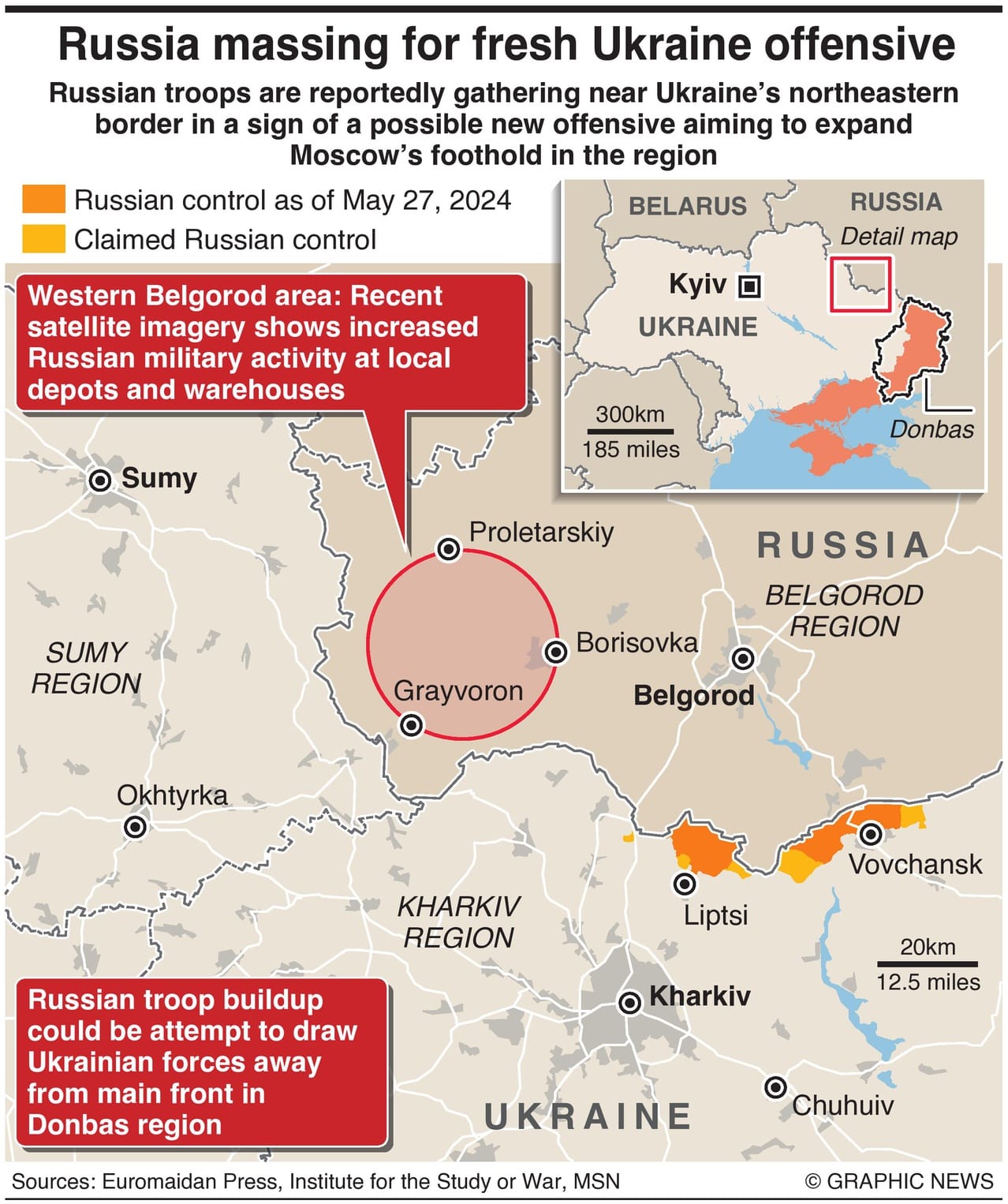 The Washington DC-based think-tank The Institute for the Study of War (ISW) said satellite imagery of the Grayvoron-Borisovka-Proletarskiy area in western Belgorod suggested Russian forces had expanded activities at depots and warehouses in recent weeks, according to MSN.