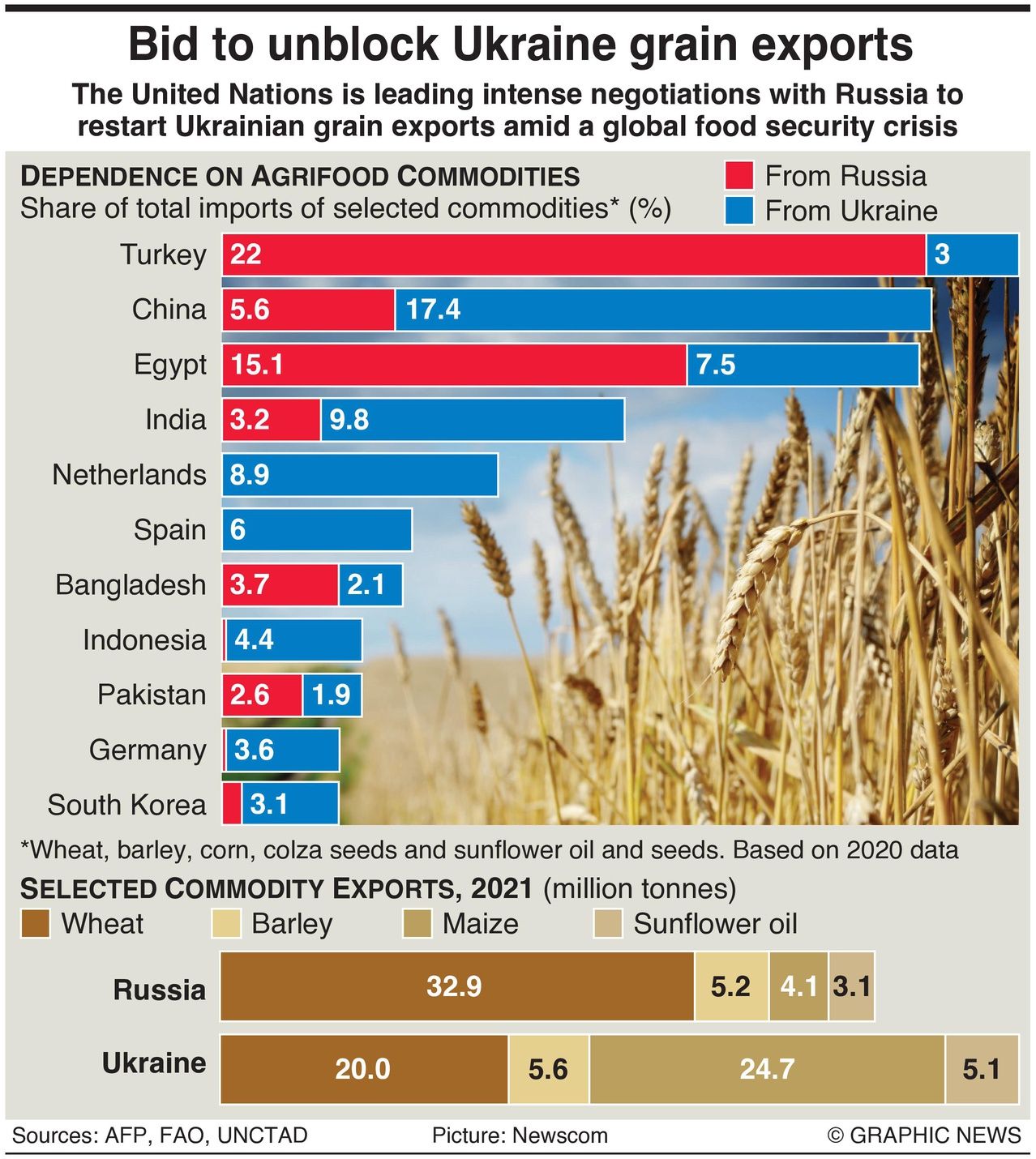 Russia and Turkey on Wednesday voiced support for the creation of a safe maritime corridor in the Black Sea so Ukraine can export grain to global markets amid an escalating world food crisis. A Turkish minister said the move should also be accompanied by the easing of Western sanctions against Russia for its invasion of Ukraine, according to AP.