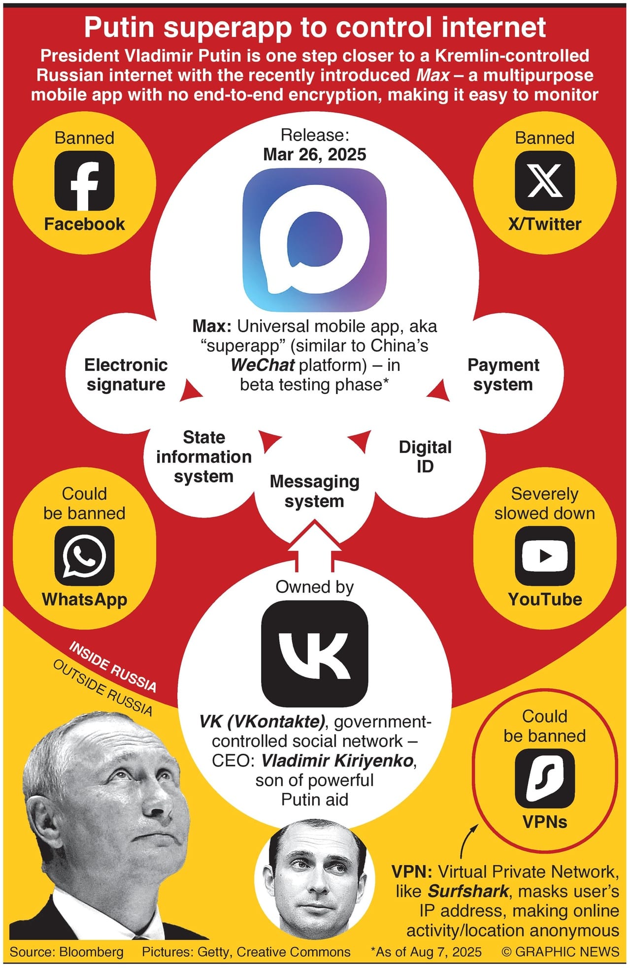 President Vladimir Putin is one step closer to a Kremlin-controlled Russian internet with the recently introduced Max – a multipurpose mobile app with no end-to-end encryption, making it easy to monitor.