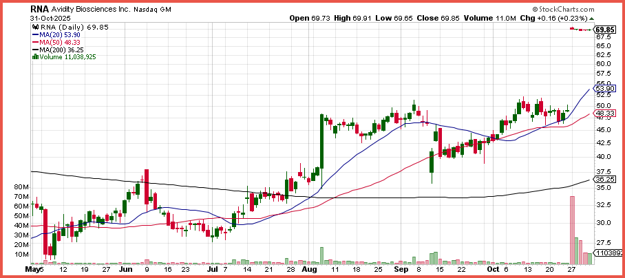 Avidity Biosciences develops Antibody Oligonucleotide Conjugates™, a new class of targeted genetic therapies. Its lead drug, AOC 1001, targets myotonic dystrophy type 1, with additional programs for muscle and neuromuscular diseases. The company is based in San Diego.