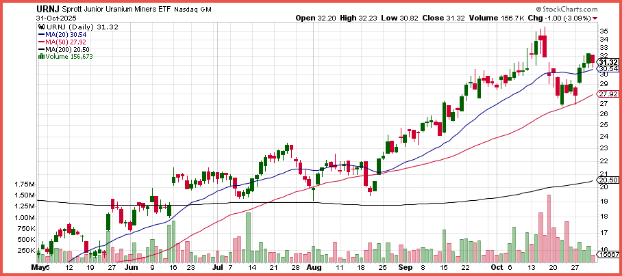 The Sprott Junior Uranium Miners ETF tracks the Nasdaq Sprott Junior Uranium Miners Index, focusing on mid-, small-, and micro-cap companies in the uranium mining sector