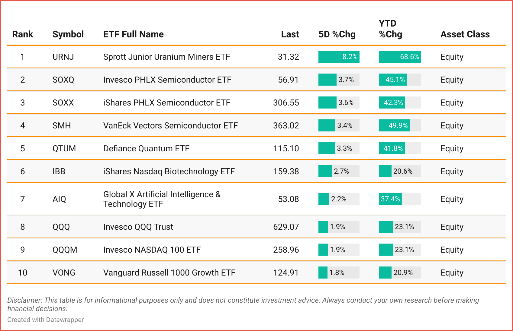 Tickers: URNJ | SOXQ |SOXX |SMH | QTUM | IBB | AIQ | QQQ | QQQM | VONG