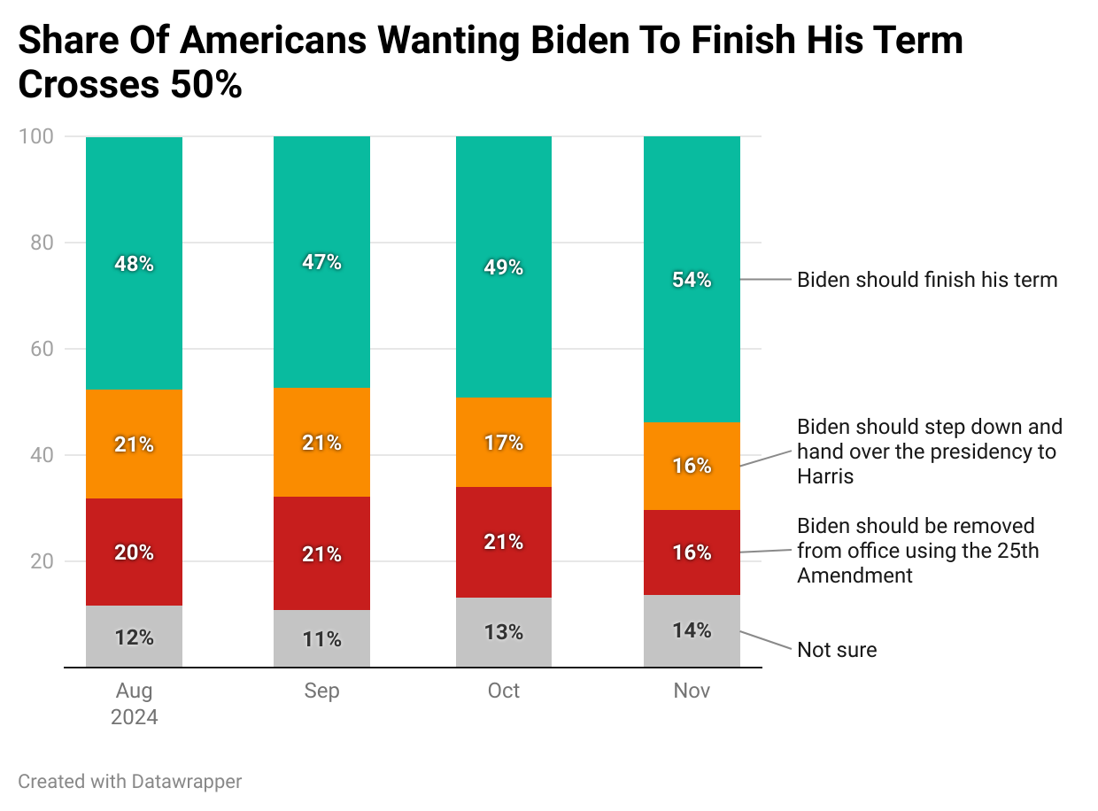For the first time since we started asking this question, more than half of all voters want Biden to finish the 10 weeks remaining in his term.