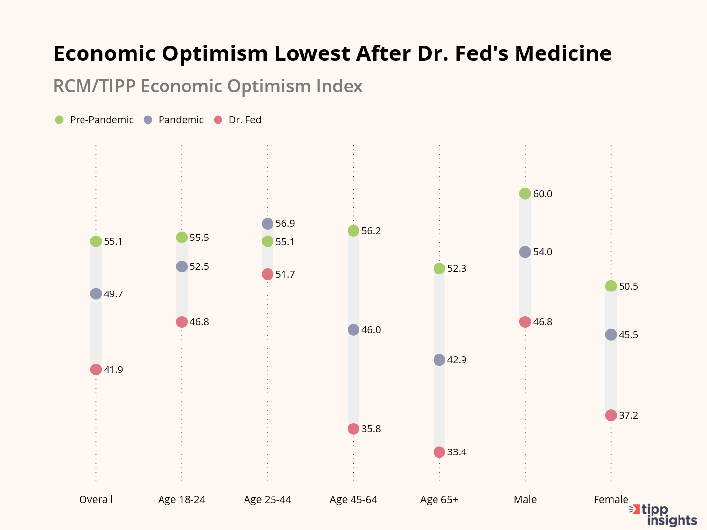 - The RCM/TIPP Economic Optimism Index reveals a significant decline in consumer confidence during the period coinciding with rate hikes