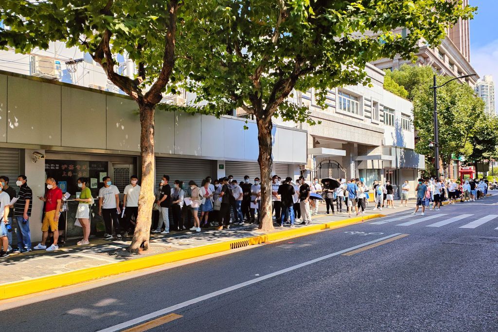 Job seekers queue nearly 100 meters outside a registration office for physical examination in Shanghai