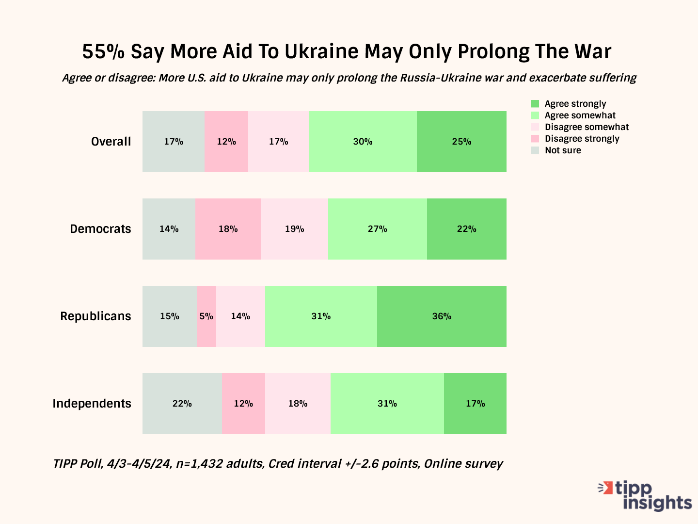 Besides, the funding mechanism is not the issue here. The larger question is whether America should fund Ukraine at all and do anything that would help prolong the war. Our latest TIPP poll shows that most Americans want the war to end.