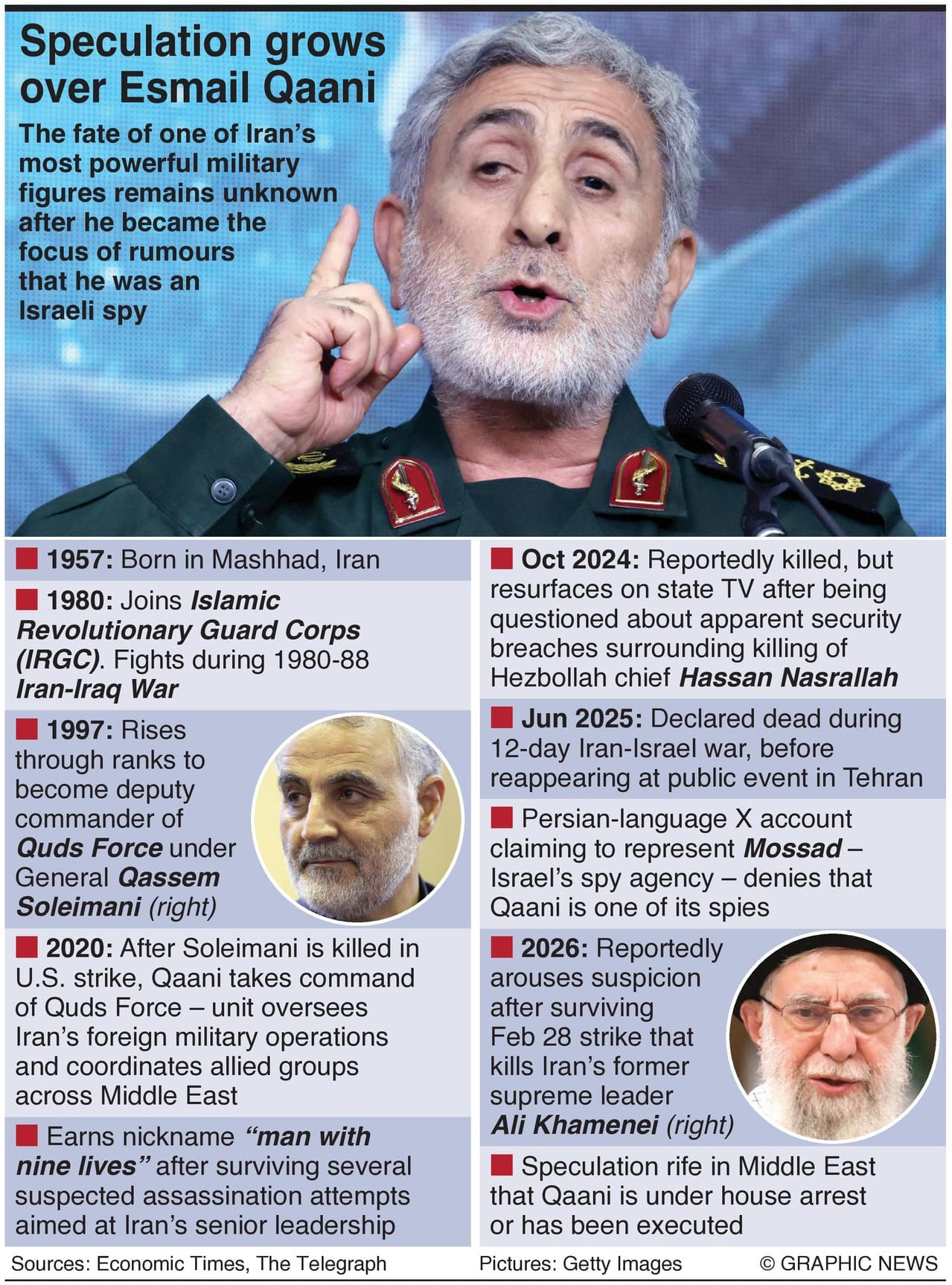 General Qaani, a brigadier general in the Islamic Revolutionary Guards Corps (IRGC), is said to have aroused suspicion after emerging unscathed from the air strike at the start of the war that killed Ali Khamenei, Iran’s former supreme leader, as well as numerous top aides.