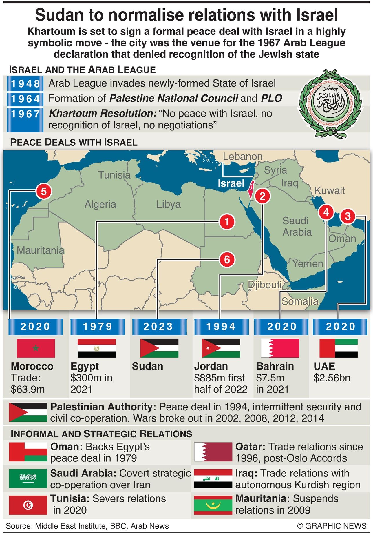 Khartoum is set to sign a formal peace deal with Israel in a highly symbolic move - the city was the venue for the 1967 Arab League declaration that denied recognition of the Jewish state.