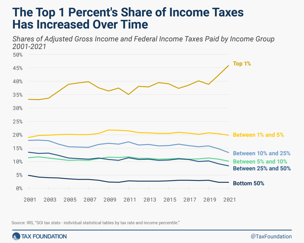 The latest data, which go through the 2021 tax year, tell the tale in a single image (from the nonpartisan Tax Foundation):