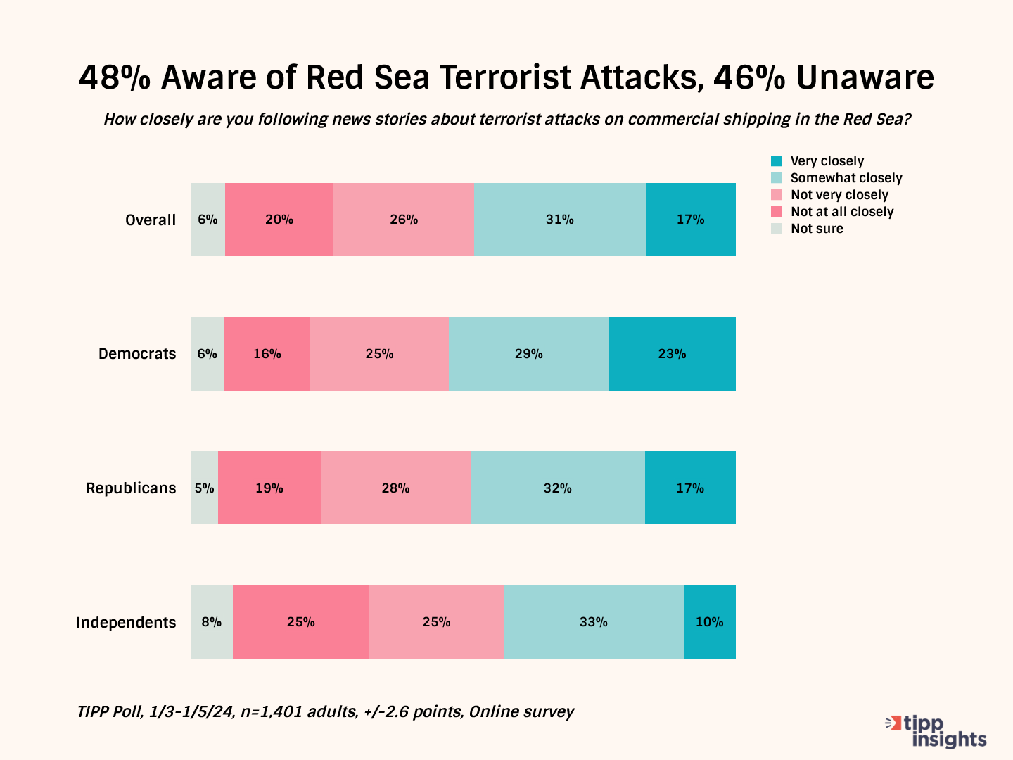 TIPP Insights conducted its polling as Houthi attacks on commercial shipping were escalating, but before the Biden administration took retaliatory action Jan. 11 and 12.