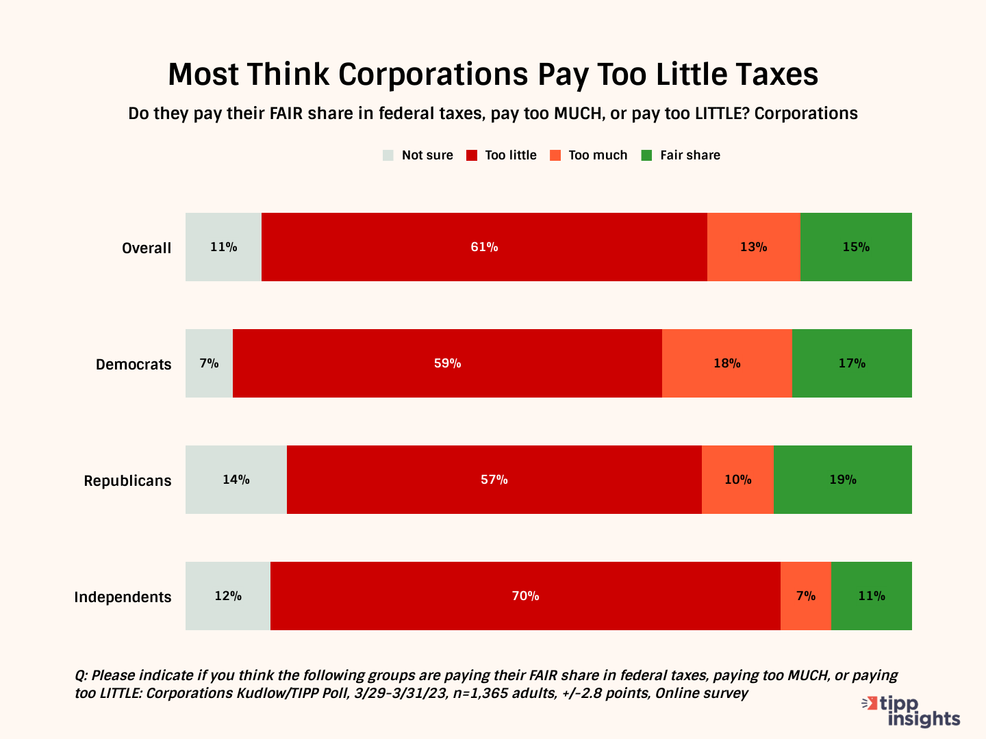 The poll also found that most independents (70%) think corporations pay too little, while 59% of Democrats and 57% of Republicans share this view.