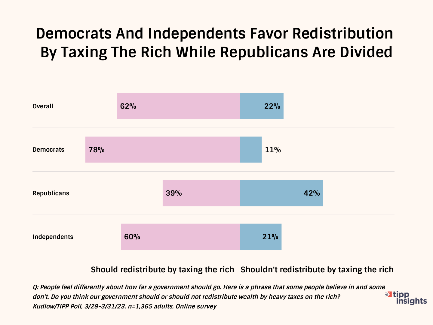 These are the key findings of a Kudlow/TIPP Poll of 1,365 Americans completed in late March. The online survey had a margin of error of +/-2.8 percentage points.
