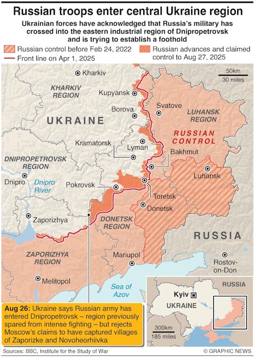 Any Russian advance into Dnipropetrovsk would be a blow to Ukrainian morale, as a U.S.-led diplomatic bid to bring the war to an end appears to be flagging despite President Donald Trump meeting Russia's Vladimir Putin in Alaska.