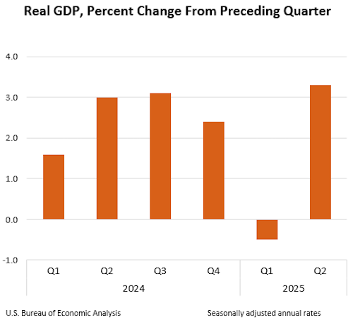 The Bureau of Economic Analysis (BEA) released its second estimate of Q2 GDP, which showed the economy grew at a 3.3% rate. That figure was faster than the 3.1% estimate of economists polled by LSEG, and above the Commerce Department's initial Q2 GDP estimate of 3%.
