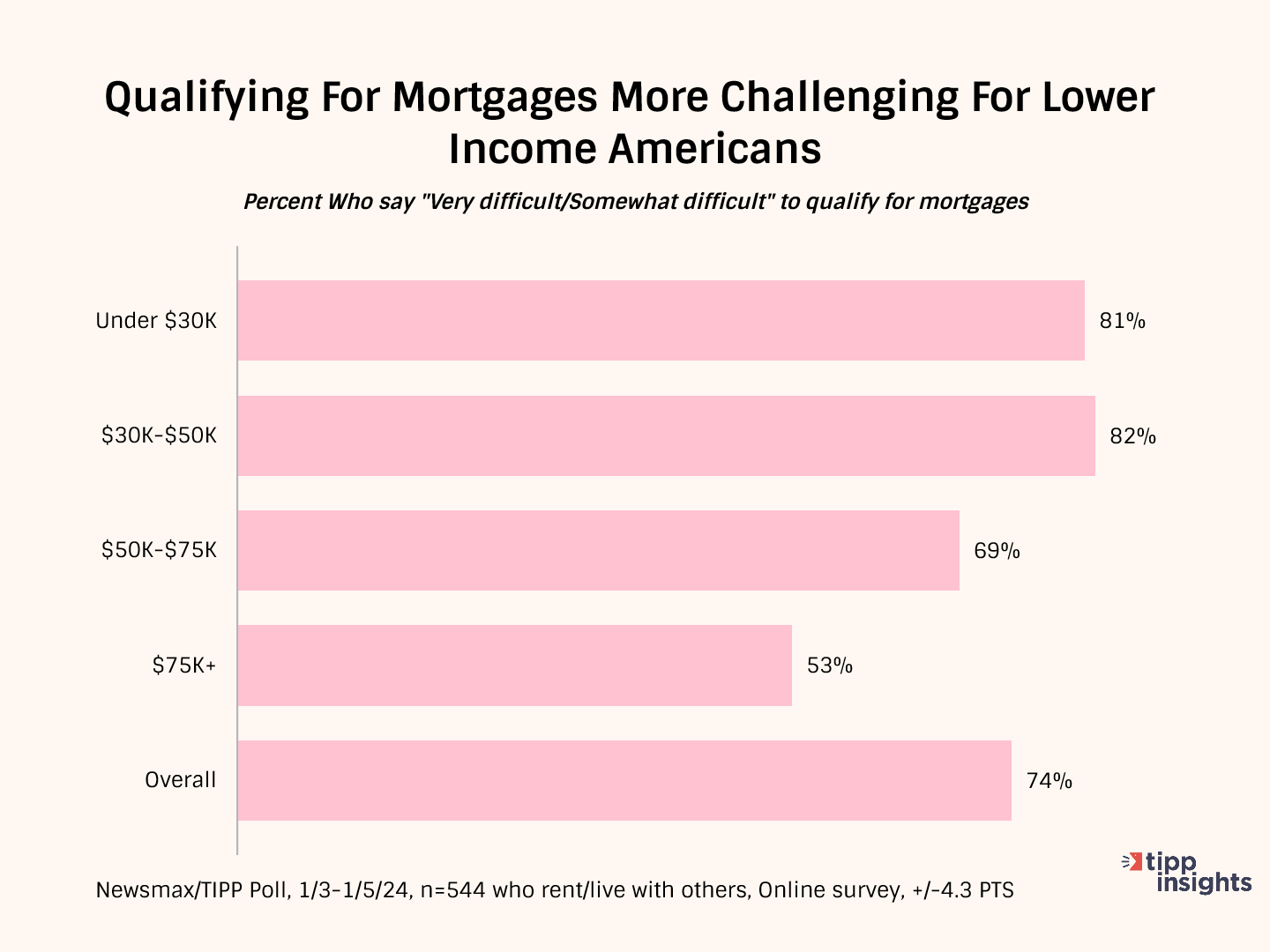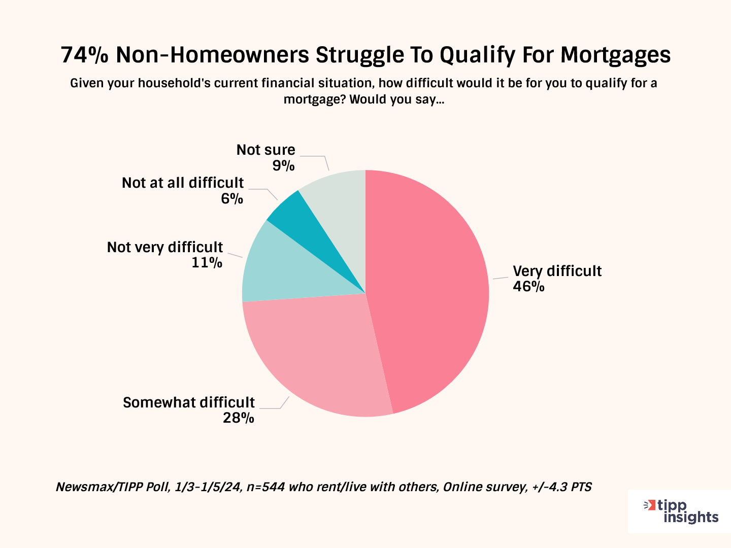 Three-fourths of non-homeowners in the survey said it would be difficult to qualify for a mortgage.