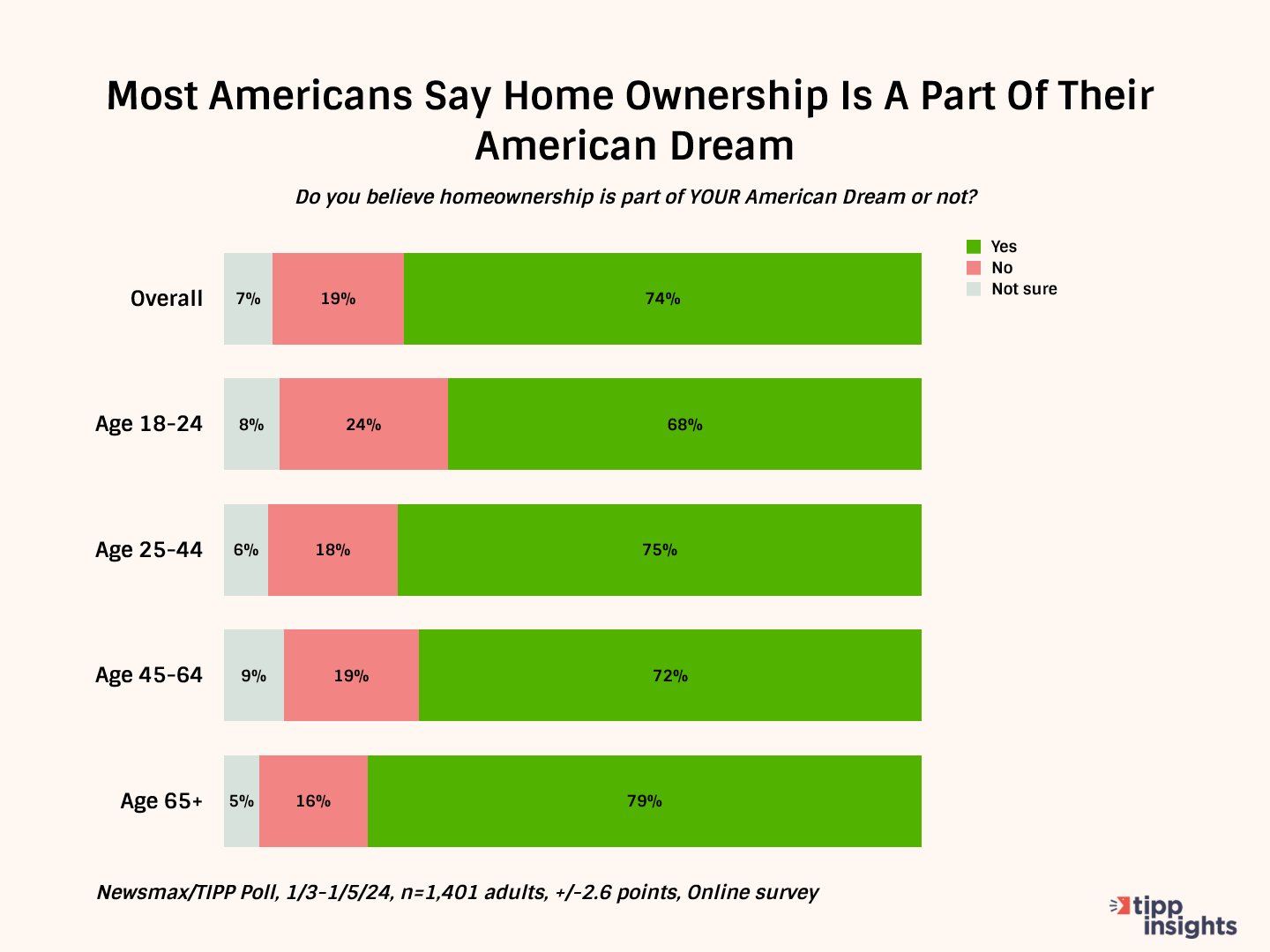 A recent Newsmax/TIPP Poll found that for three-quarters, 74%, of the people who took part in the survey, owning a home is part of their American Dream. Age and other criteria seem to have little sway over the desire to have a place called one’s own.
