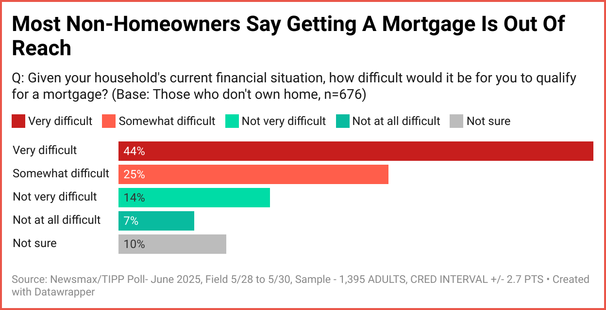Unfortunately, not just the viability of a mortgage in the long run is dissuading many households. A significant portion of those who participated in the Newsmax/TIPP Poll stated that, given their current financial situation, it would be extremely difficult to qualify for a mortgage.