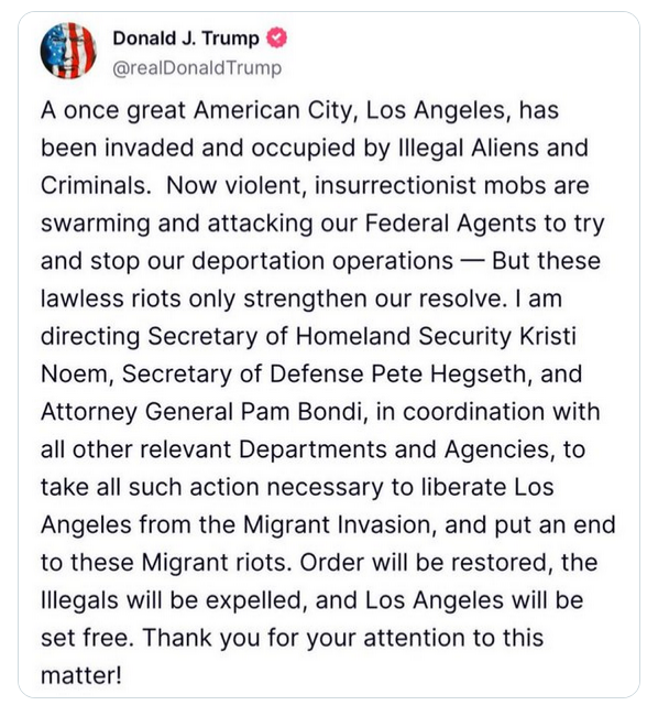 The summer has just begun. We are in for a very long summer of resistance simply because the Trump administration is doing the job it was elected to do. The question remains: Will America's institutions hold, or will the resistance continue to turn violent in the face of lawful federal authority?