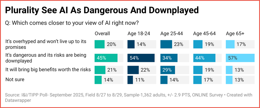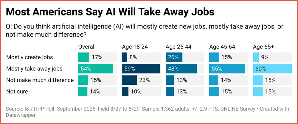 Recent polling suggests the public already senses this shift. A majority of Americans say AI is more likely to take away jobs than create them, and many believe its risks are being understated.