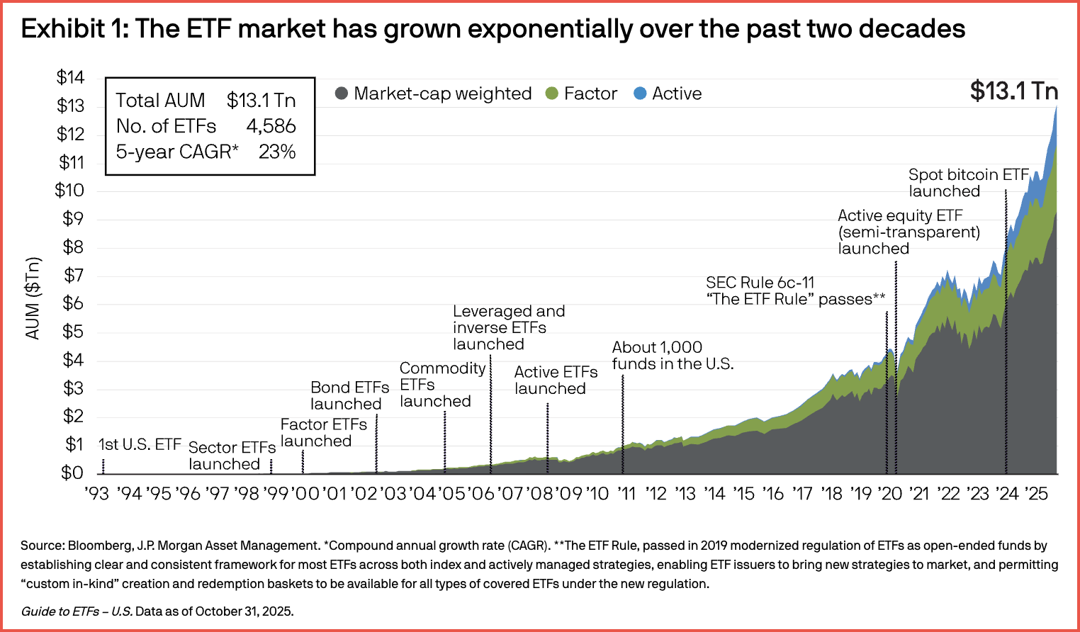 There are now more exchange-traded funds than publicly listed companies in the U.S., with ETF assets totaling roughly $13 trillion across thousands of funds. The rapid growth reflects investors’ shift toward low-cost, diversified, and thematic investment vehicles over the past two decades.