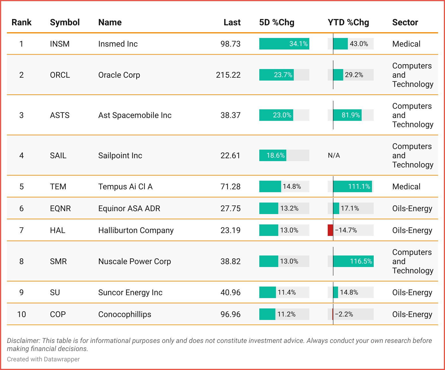 Tickers: INSM| ORCL | ASTS | SAIL | TEM | EQNR| HAL | SMR | SU | COP