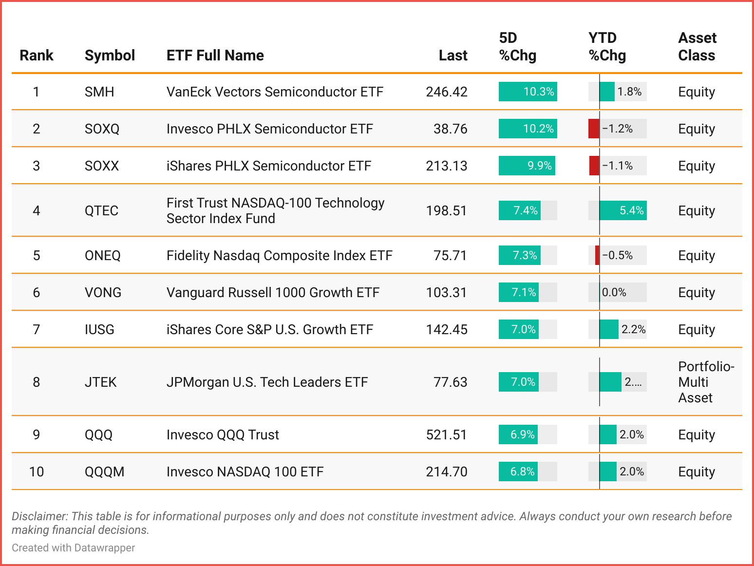 Tickers: SMH | SOXQ |SOXX | QTEC | QNEQ | VONG| IUSG | JTEK | QQQ | QQQM