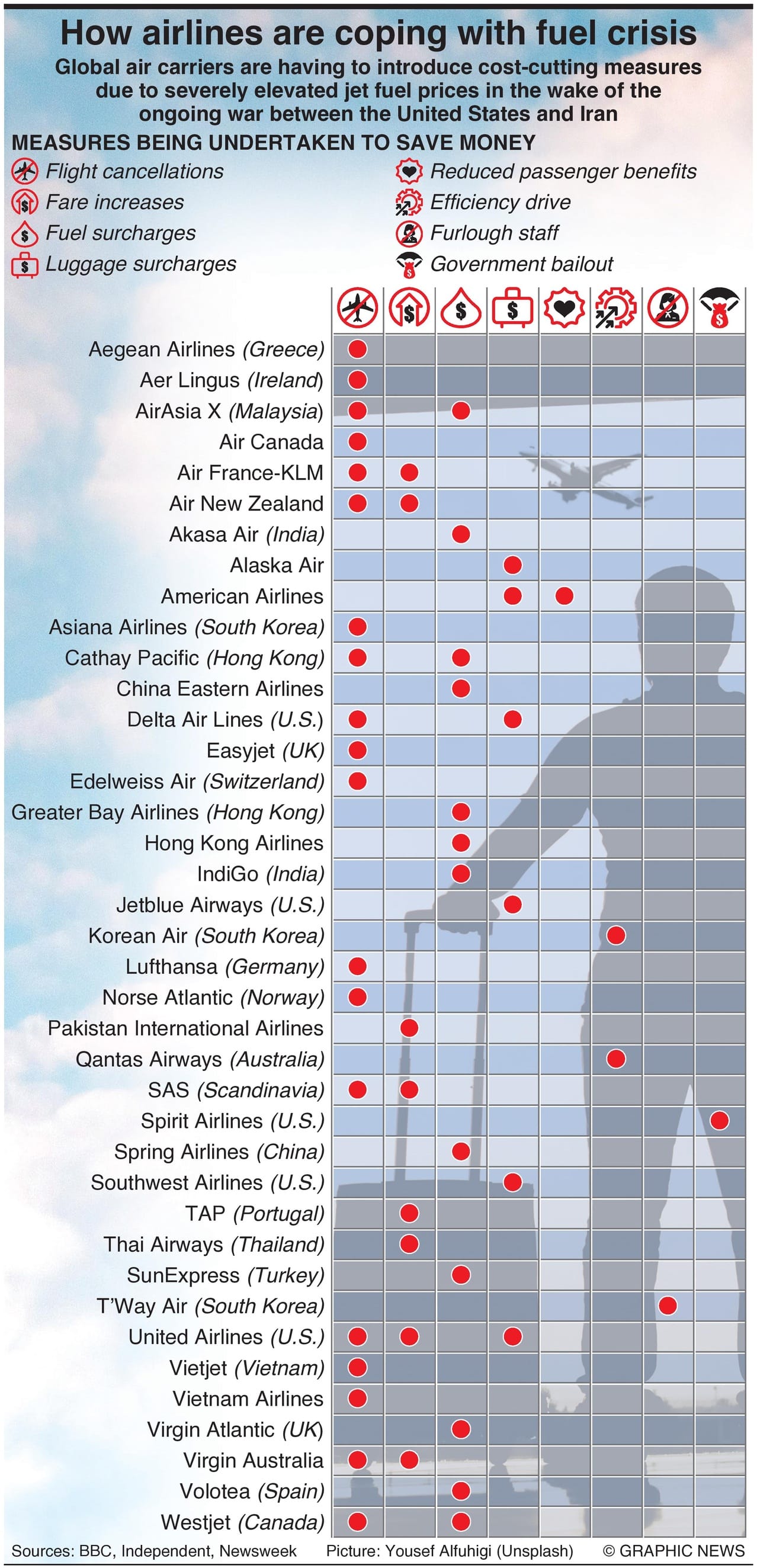 Global air carriers are having to implement cost-cutting measures amid severely elevated jet fuel prices in the wake of the ongoing war between the United States and Iran.