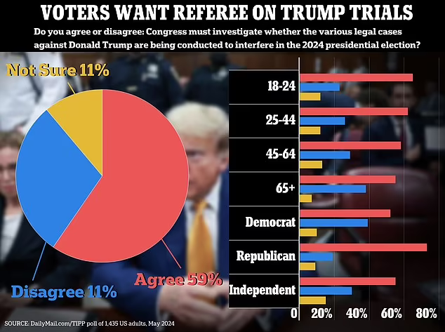 The DailyMail.com/TIPP survey shows that 59 percent of people want lawmakers to probe what was behind the wave of multiple cases against the Republican candidate.