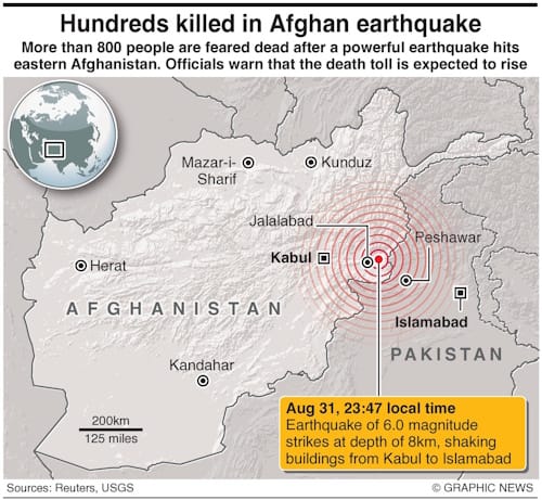 More than 800 people are feared dead after a powerful earthquake hits eastern Afghanistan. Officials warn that the death toll is expected to rise.