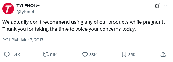 10. Tylenol’s 2017 Tweet About Pregnancy Reemerges After Trump Comments