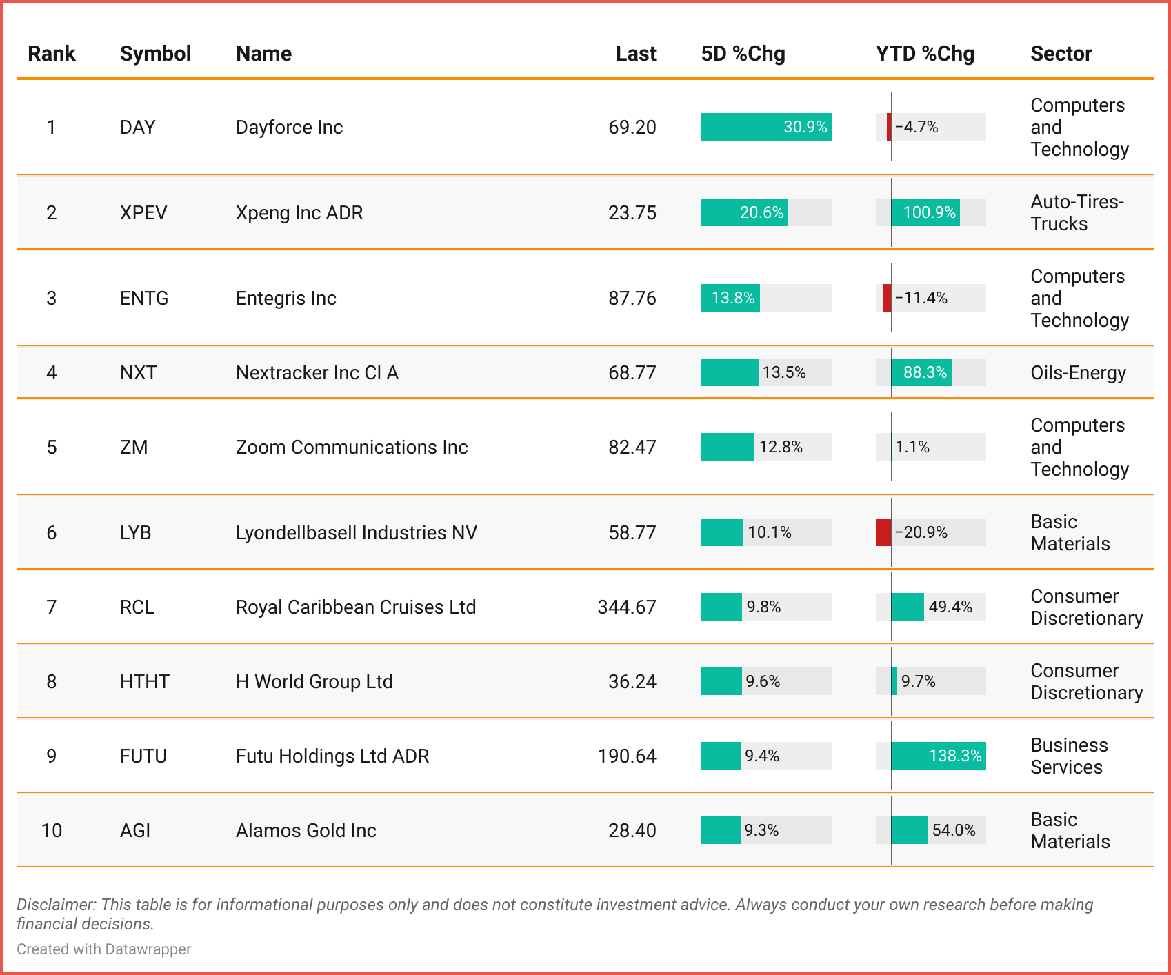 Tickers: DAY | XPEV | ENTG | NXT | ZM | LYB | RCL | HTHT | FUTU |AGI