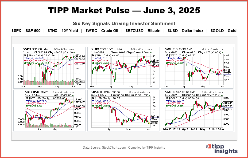 • Fed speakers and data ahead, with investors eyeing May’s job report and more policy signals this week.