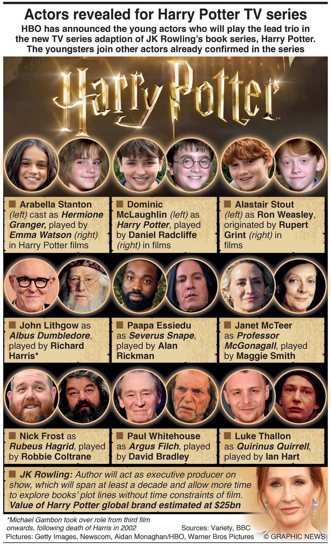 HBO has announced the young actors who will play the lead trio in the new TV series adaption of JK Rowling’s book series, Harry Potter. The youngsters join other actors already confirmed in the series.