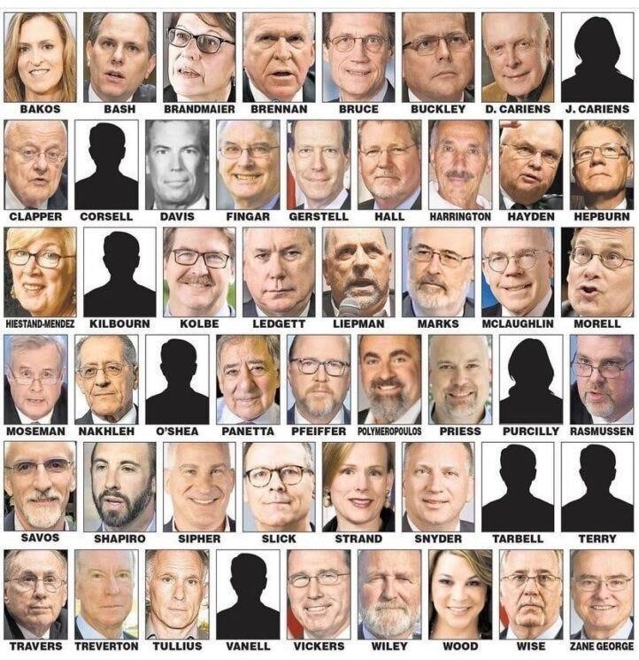 The litmus test as to whether the national security Deep State is really on the run, however, will be if the Donald sticks it out with his brilliant choice of Tulsi Gabbard for DNI (Director of National Intelligence). Tulsi knows her brief cold—so give her a few months as DNI and the wailing sounds coming from the 17 intelligence agencies will turn into roaring crescendo of disclosure and exposure of the evil deeds done by many of those pictured below.