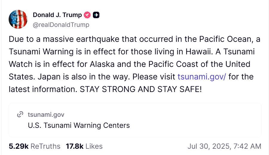 Japan urged nearly 2 million people to seek higher ground. Russia declared a state of emergency in affected coastal towns. President Trump has been briefed on the situation. Federal emergency teams are coordinating with local authorities to monitor ongoing threats.