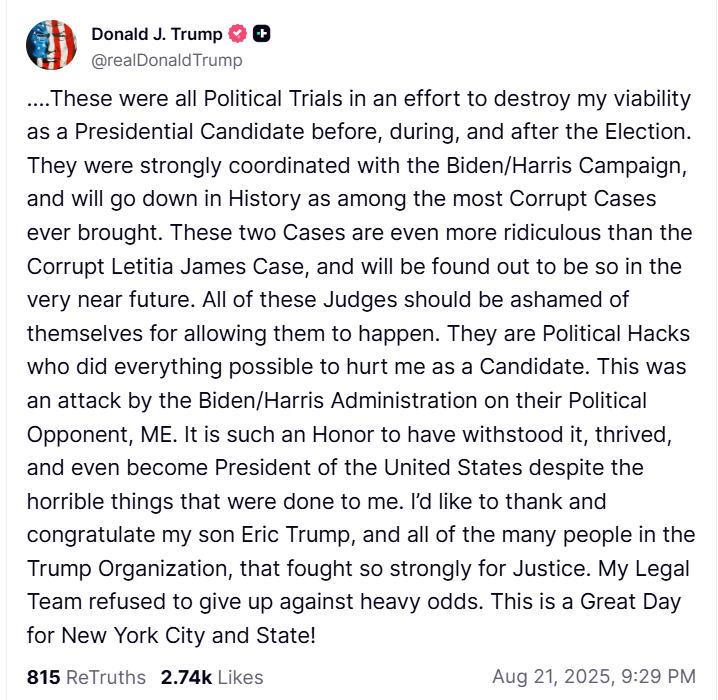 — Donald Trump Jr. (@DonaldJTrumpJr) August 21, 2025