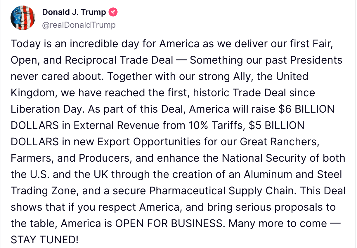 President Donald Trump announced a landmark trade deal between the United States and the United Kingdom on Thursday, calling it the first “fair, open, and reciprocal trade deal” of its kind. Speaking from the White House, Trump emphasized that economic security is now recognized as national security by both nations, with plans to align export controls and protect key industries such as steel and pharmaceuticals.