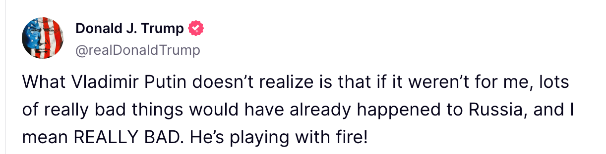“Something has happened to [Putin]. He has gone CRAZY!” Trump wrote a day earlier.